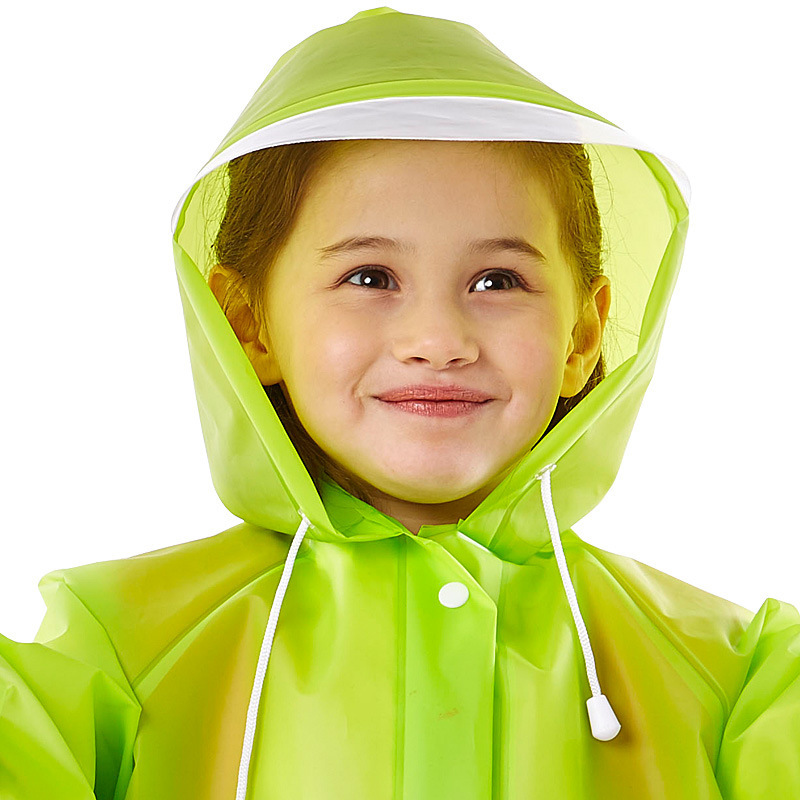 Kids’ rainwear often uses waterproof materials like nylon or polyester, with sealed seams, adjustable cuffs, and hoods for protection against rain and wind. Reflective elements enhance visibility. Diverse styles, vibrant colors, and playful designs cater to children’s preferences, ensuring both functionality and fun.
