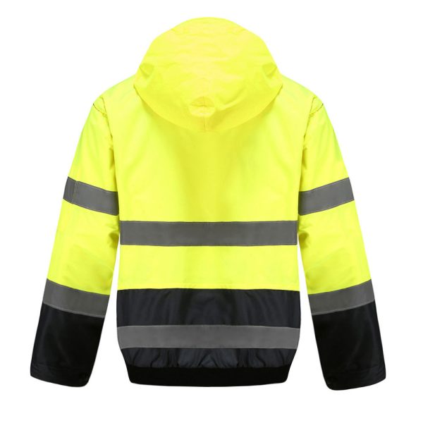 The design of rain workwear often integrates practical elements such as high-visibility strips, reflective features, and reinforced panels to enhance visibility and safety, particularly in low-light conditions or hazardous work environments.